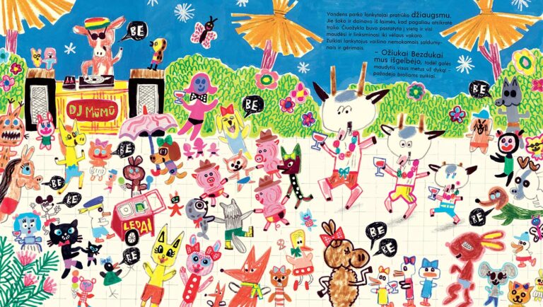 4. Jūsų iliustracijos kupinos mažyčių veikėjų ir detalių. Kaskart atvertus knygą galima pastebėti kažką naujo. Kokias istorijas čia paslėpėte vaikams?