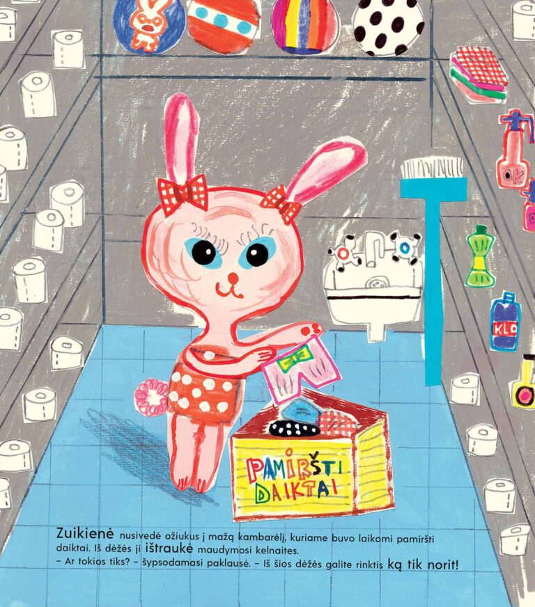 Rožinė zuikienė. Ją galima rasti ir mano senuose eskizų sąsiuviniuose, ir kai kuriose anksčiau pieštose knygose.