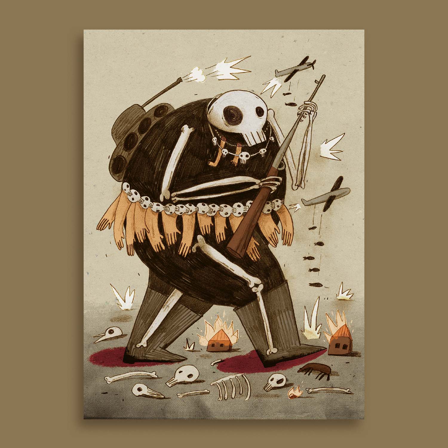 Iliustruotojos Linos Itagaki sukurtas atvirukas pagal knygą MERGAITĖ SU ŠAUTUVU.