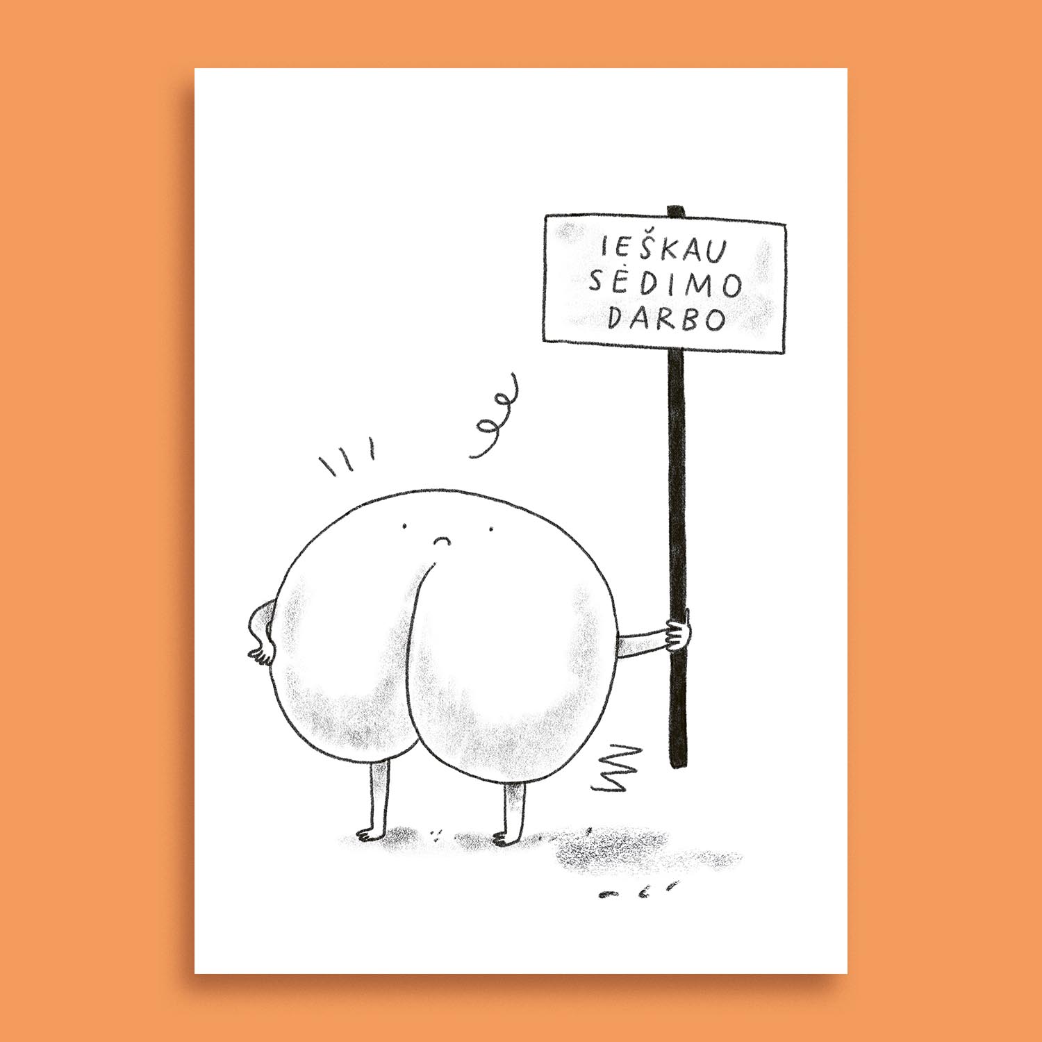 Superbobučių atvirukas „Ieškau sėdimo darbo“