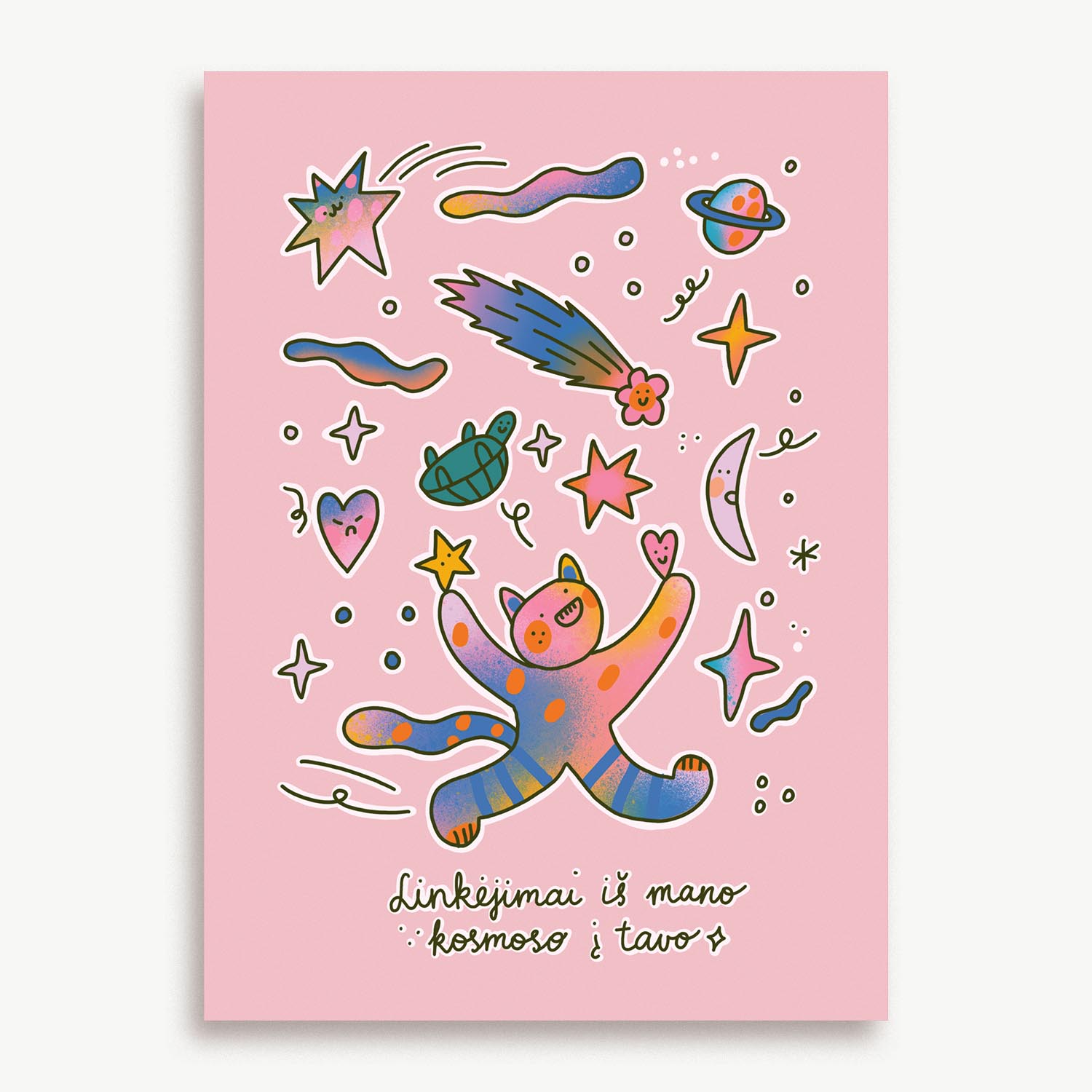 Superbobučių atvirukas „Kosmosas“ rožinis