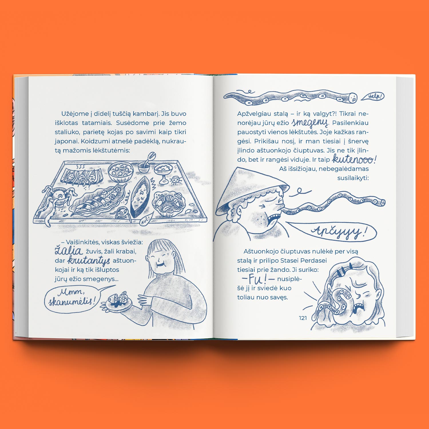 „Knyga iliustruota nuotaikingomis ir šmaikščiomis iliustracijomis, kurios gyvai papildo istoriją ir ją išplečia trumpais, žaismingais tekstukais, ištiktukais ir veikėjų mintimis. Pasirinktos mėlyna/balta spalvos suteikia linksmumo, lengvumo ir tai tarsi tarpinis žingsnelis nuo paveikslėlių link paauglių knygų. Šioje knygoje daug juokelių, linksmų nesąmonių ir sąmonių ir, žinoma, silkių – kaip gi be mėgiamiausio bobučių patiekalo! Net buvo gaila, kai pasibaigė – puiki knyga vaikams, tėveliams ir, aišku, seneliams!“