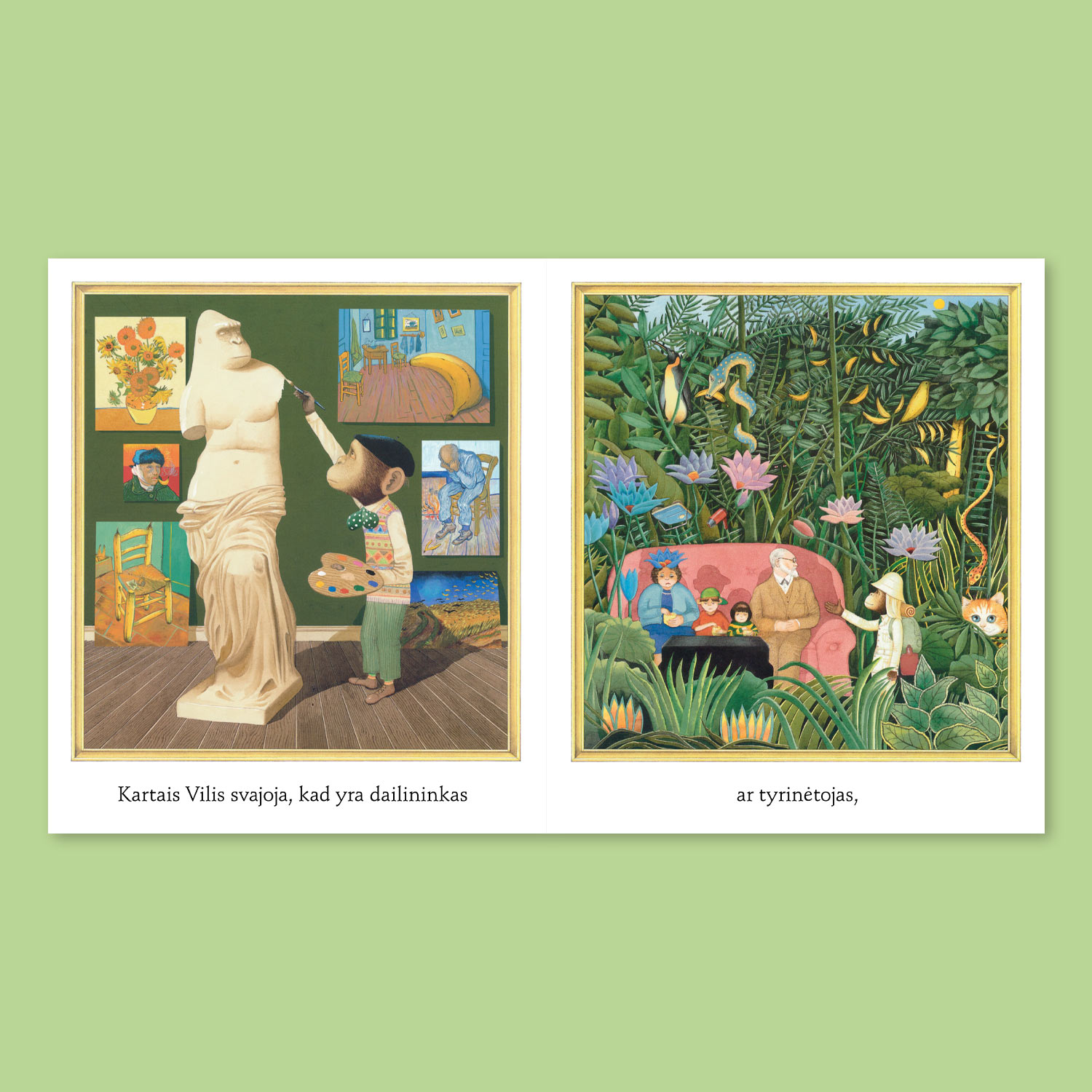 Tai puikus įvadas mažiesiems į stebinantį meno pasaulį. Knyga skirta ir meno istorijos ekspertams, ir naujokams. Vieni tyrinės paveiksluose užkoduotas žymių kūrinių detales, kiti ieškos knygos puslapiuose paslėptų bananų.