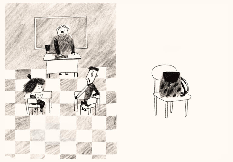 Man labai patiko piešti veikėjų pozas, veido išraiškas, stengiausi, kad jie atrodytų lyg gyvi. Labiausiai norėjosi perteikti kaip jaučiasi Lukas. Istorijos pradžioje jis, atsiskyręs nuo kitų vaikų, vienas žaidžia su savo laiveliu, penalą pastatęs kaip užtvarą. Vėliau klasėje, kai sulaukia per daug kitų vaikų dėmesio, jis iš įtampos sukryžiavęs po stalu kojas bando pasislėpti nuo „užpuolikų“ po skrybėle. Na ir bučinio metu, nors Lukas jaučia simpatiją Felicijai, jo laikysena vis tiek įsitempusi.